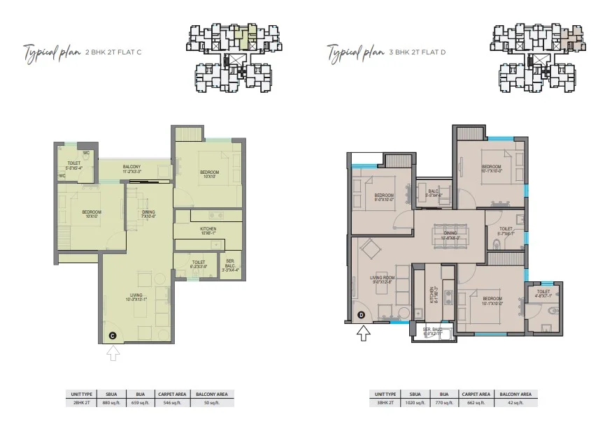 | 2BHK | 880 - 890 sq ft | ₹ 51 L Onwards |