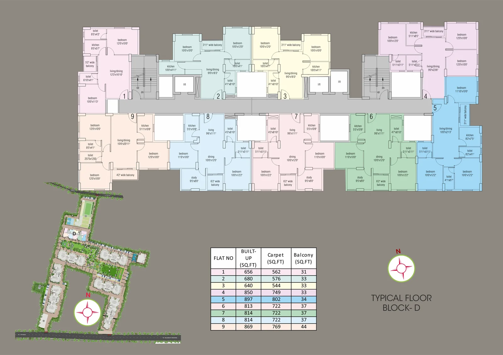 | 3 BHK | 888 (Carpet Area) | On Request | ₹ 7900000 | ₹ 10% |