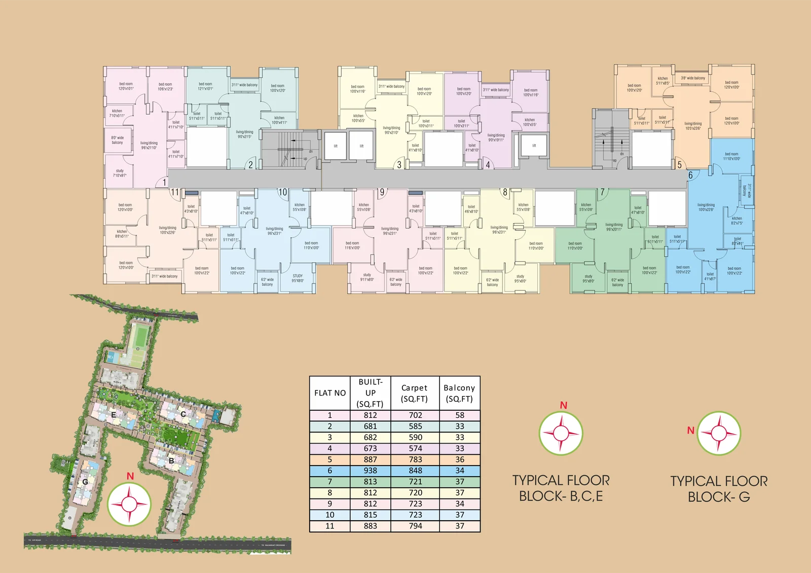 | Unit Type | Size (SQ. FT.) | Price (SQ. FT.) | Amount | Booking Amt |